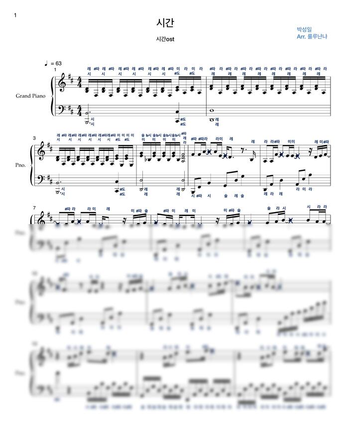 가호 - 시간 (시간 OST, 계이름 악보) by 룰루냔냐 1p 미리보기