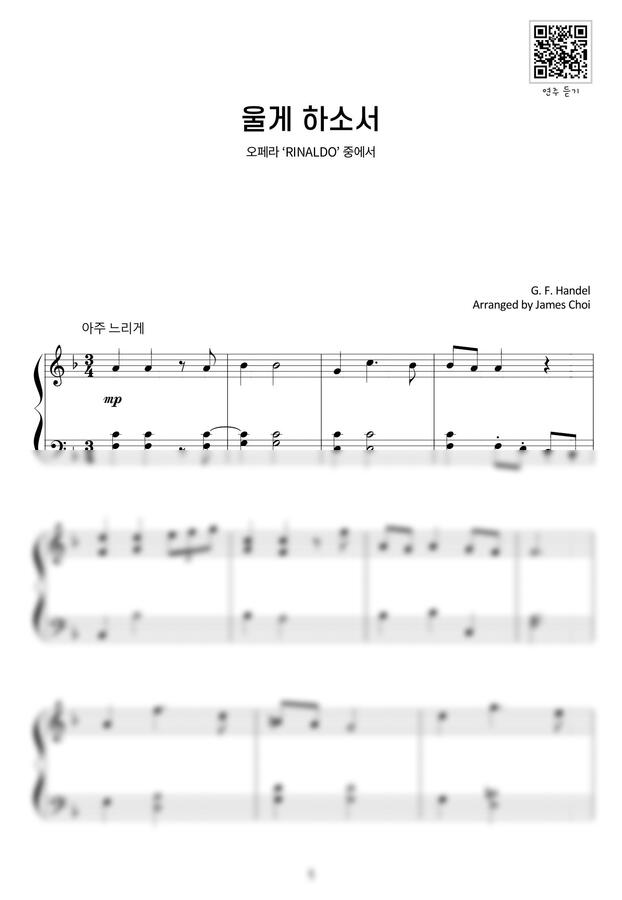 마디수는 적지만 아주 느리게 연주하기 때문에 감정을 넣는 훈련, 스타카토 효과 등을 연습(레슨)하는데 도움이 되실 거라 생각해요.