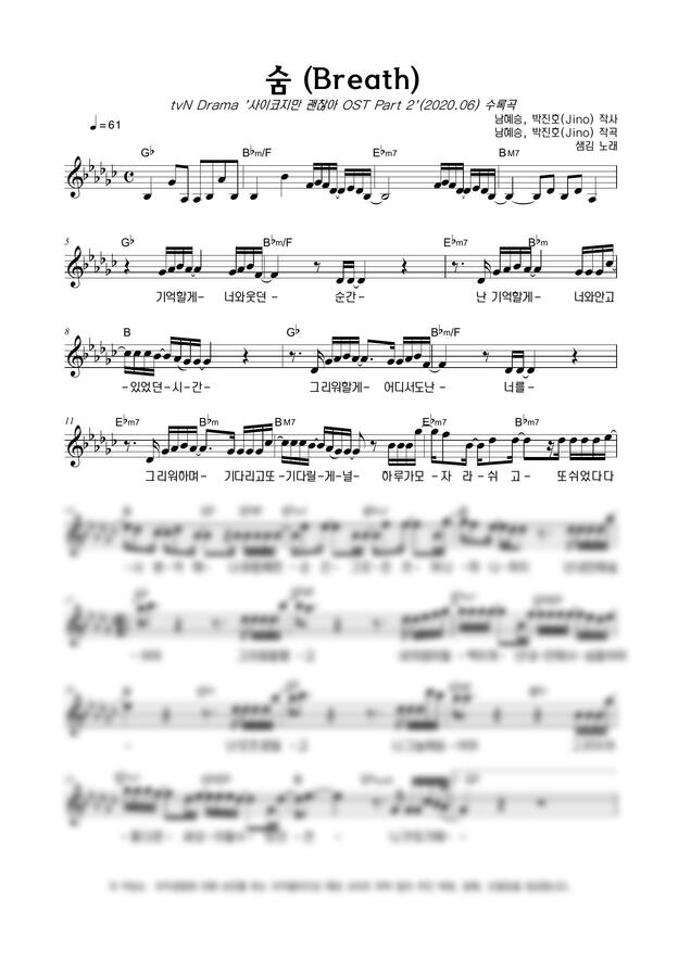 샘김 (Sam Kim) - 숨 (Breath) by 악보마트