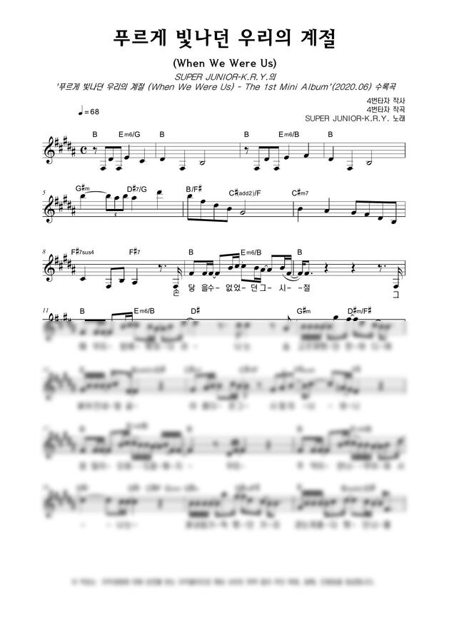 슈퍼주니어 K.R.Y. - 푸르게 빛나던 우리의 계절 (When We Were Us) by 악보마트