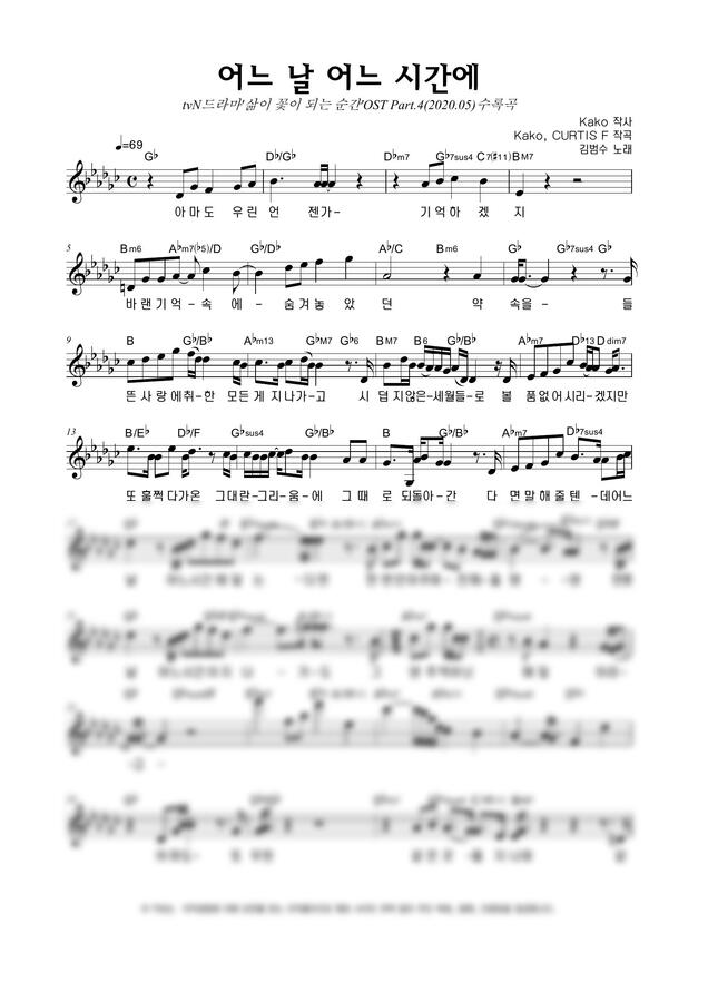 김범수 - 어느 날 어느 시간에 by 악보마트