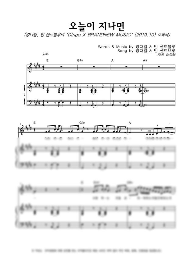 양다일, 빈센트블루 - 오늘이 지나면 by 악보마트