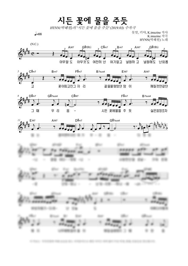 HYNN(박혜원) - 시든 꽃에 물을 주듯 by 악보마트