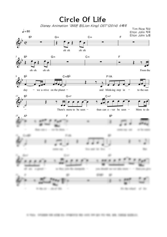 Elton John - Circle of Life by 악보마트 1p 미리보기
