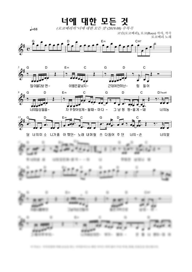 로코베리 - 너에 대한 모든 것 by 악보마트