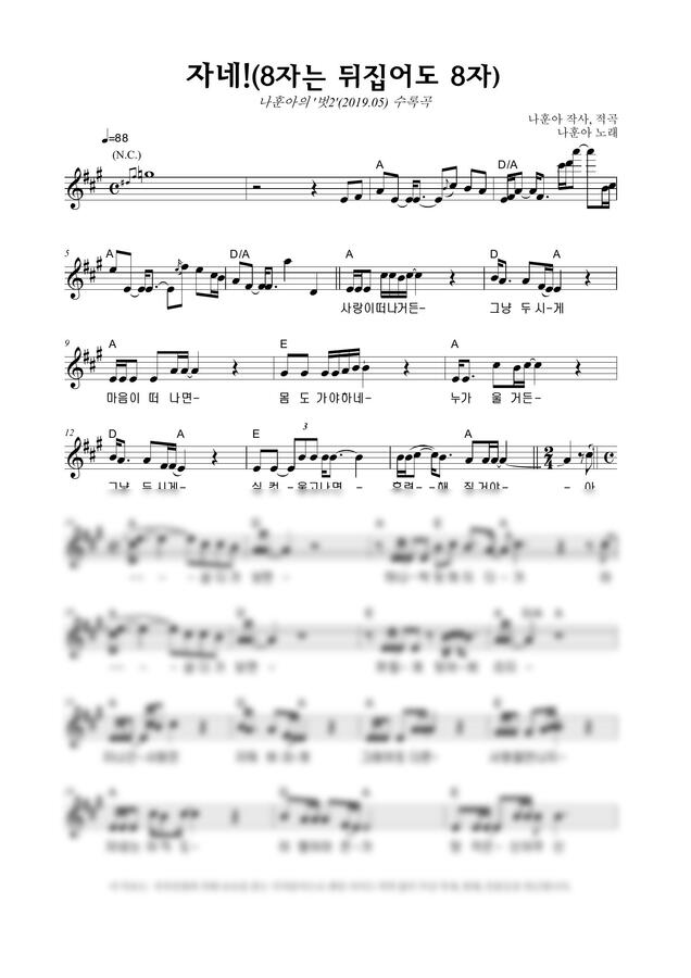 나훈아 - 자네! (8자는 뒤집어도 8자) by 악보마트