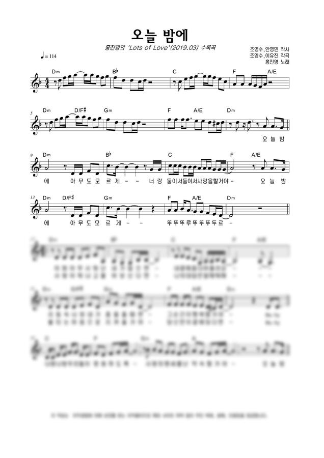 홍진영 - 오늘 밤에 by 악보마트