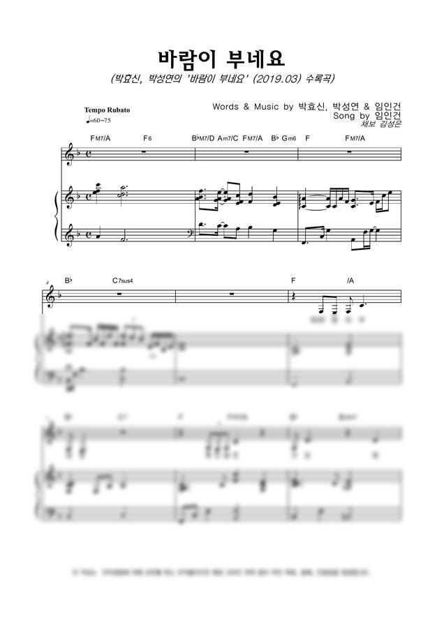 박효신, 박성연 - 바람이 부네요 by 악보마트