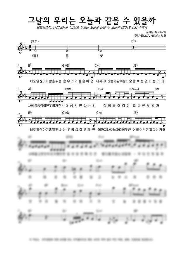 모브닝 (MOVNING) - 그날의 우리는 오늘과 같을 수 있을까 by 악보마트