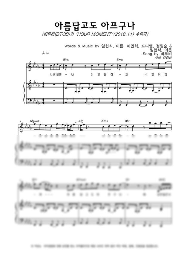 비투비(BTOB) - 아름답고도 아프구나 by 악보마트