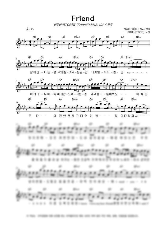 비투비(BTOB) - Friend by 악보마트