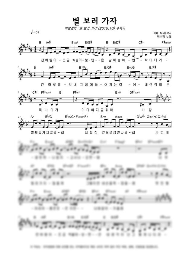 박보검 - 별 보러 가자 by 악보마트0
