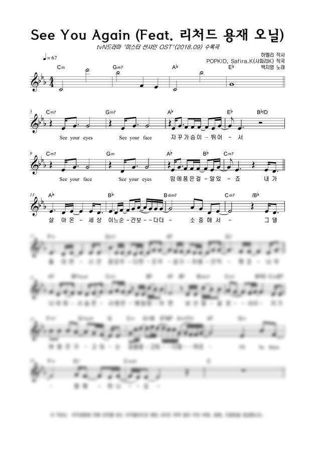 See You Again (Feat. 리처드 용재 오닐) by 악보마트 1p 미리보기