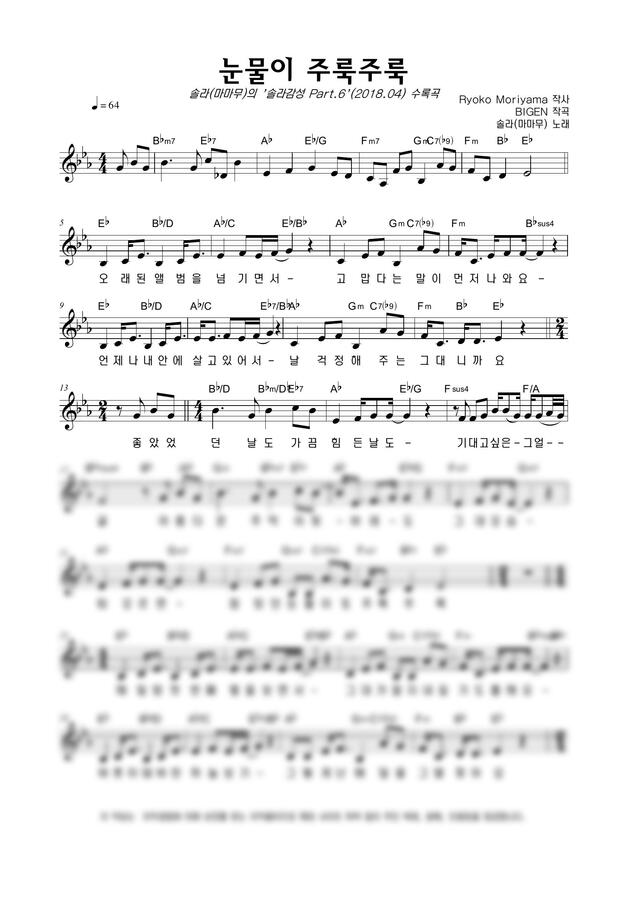 솔라(마마무) - 눈물이 주룩주룩 by 악보마트