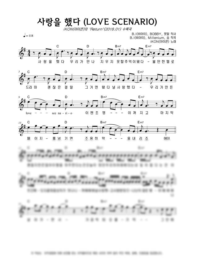 iKON(아이콘) - 사랑을 했다 (LOVE SCENARIO) by 악보마트