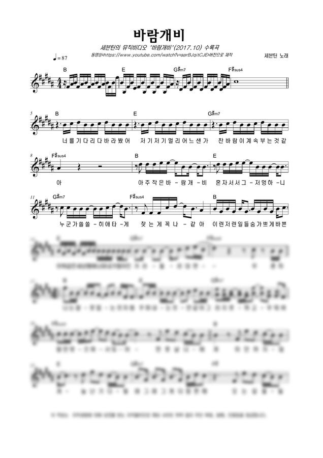 세븐틴(Seventeen) - 바람개비 by 악보마트