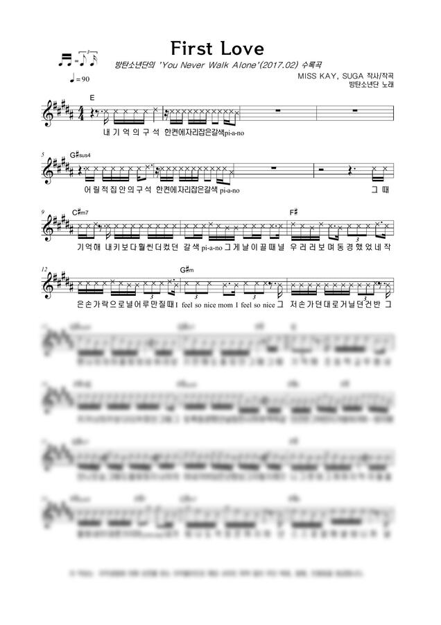 물에 빠진 나이프 OST - Chasing Kou(코우를 쫓아)피아노악보4종류