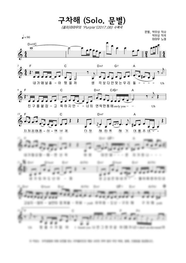 마마무 (Mamamoo) - 구차해 (Solo. 문별) by 악보마트 2p 미리보기