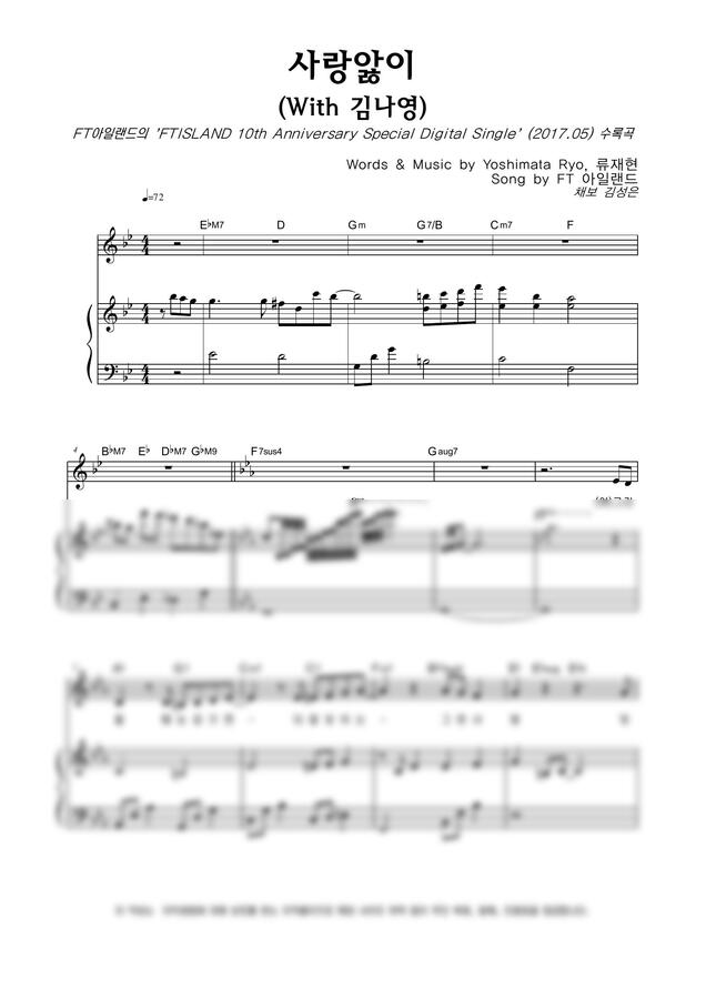 FT아일랜드 - 사랑앓이 (With 김나영) by 악보마트 1p 미리보기