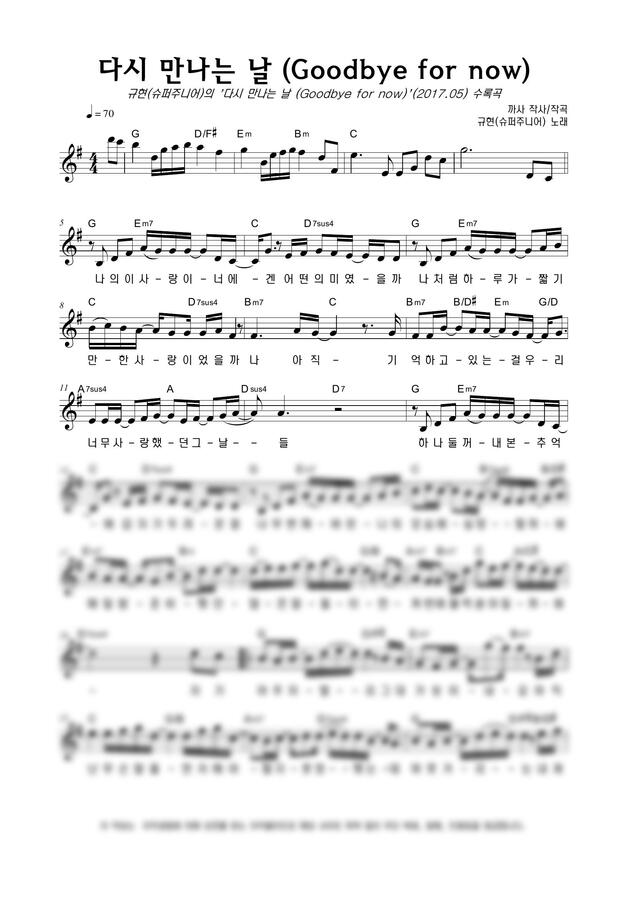 규현(슈퍼주니어) - 다시 만나는 날 (Goodbye for now) by 악보마트