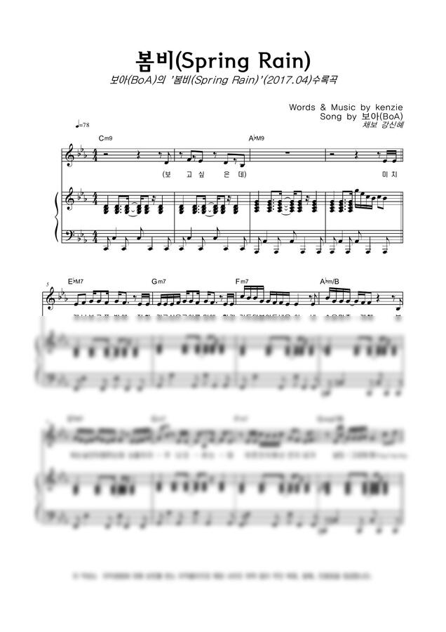 보아(BoA) - 봄비 (Spring Rain) by 악보마트
