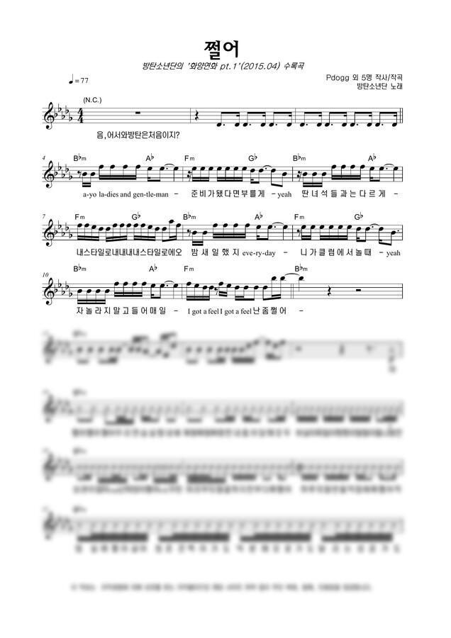 방탄소년단 - 쩔어 by 악보마트