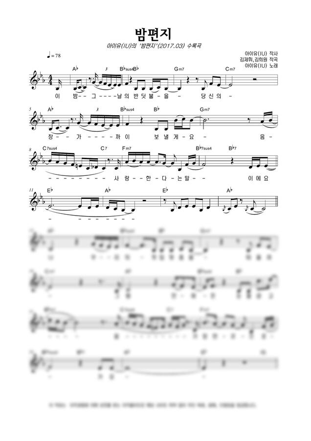 아이유 - 밤편지 by 악보마트0