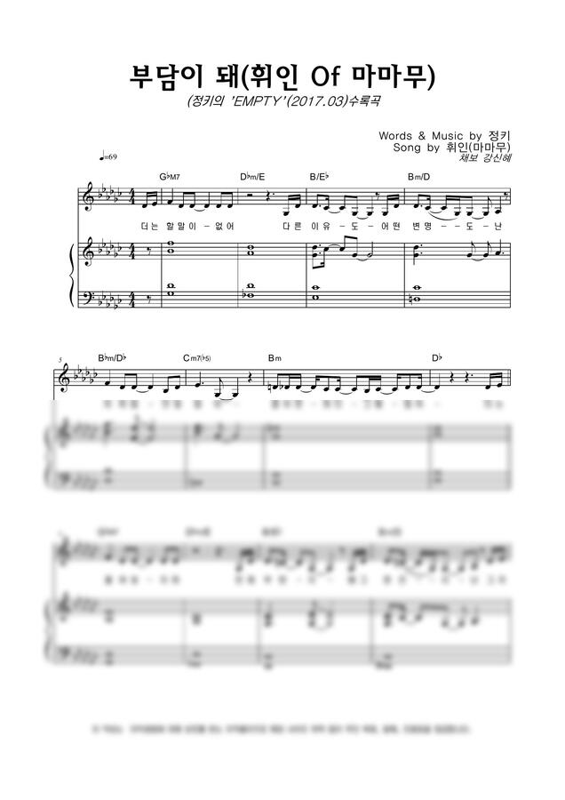 정키 - 부담이 돼 (Feat. 휘인 Of 마마무) by 악보마트 2p 미리보기