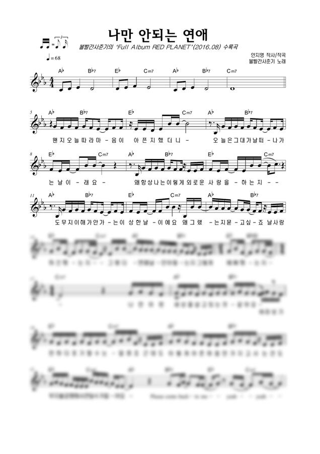 볼빨간사춘기 - 나만 안되는 연애 by 악보마트