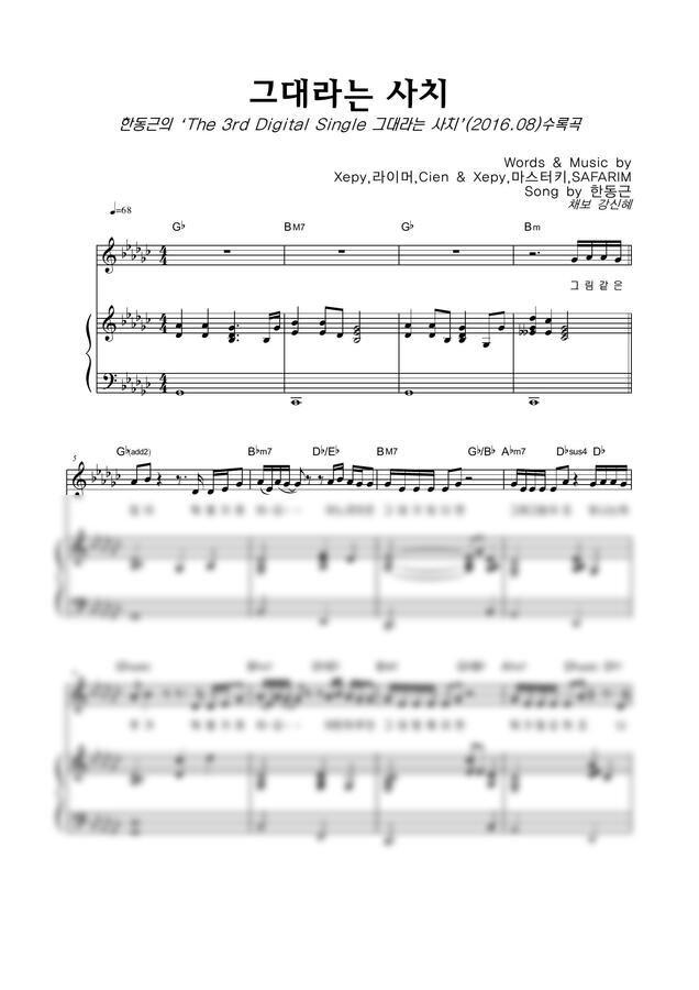 한동근 - 그대라는 사치 by 악보마트
