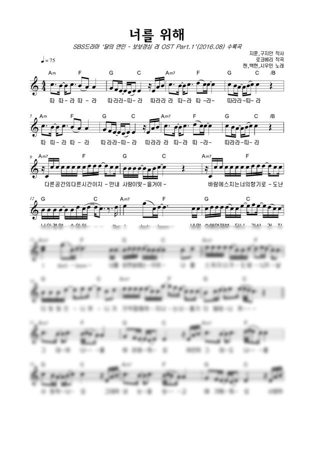 첸, 백현, 시우민 - 너를 위해 by 악보마트