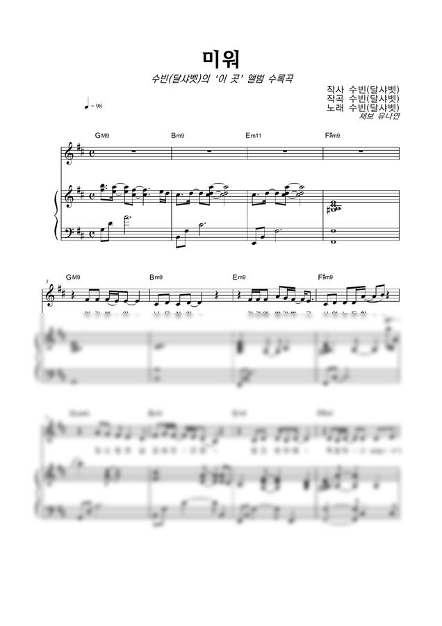 수빈(달샤벳) - 미워 by 악보마트0