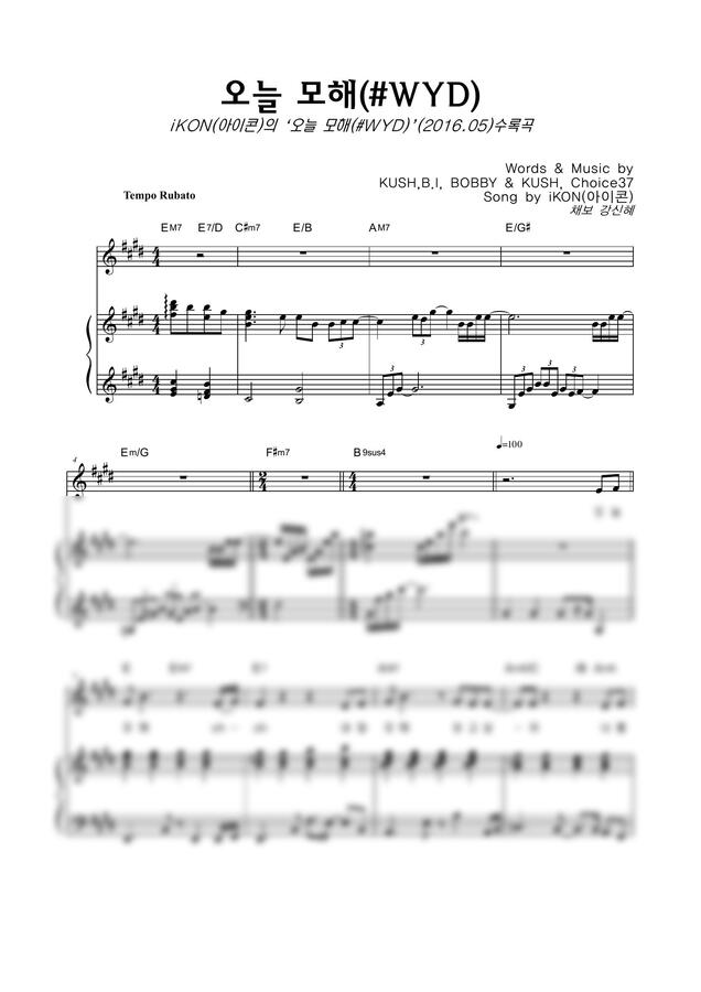 iKON(아이콘) - 오늘 모해 by 악보마트