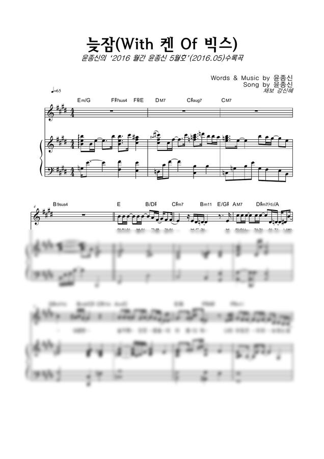 윤종신 - 늦잠 (With 켄 Of 빅스) by 악보마트