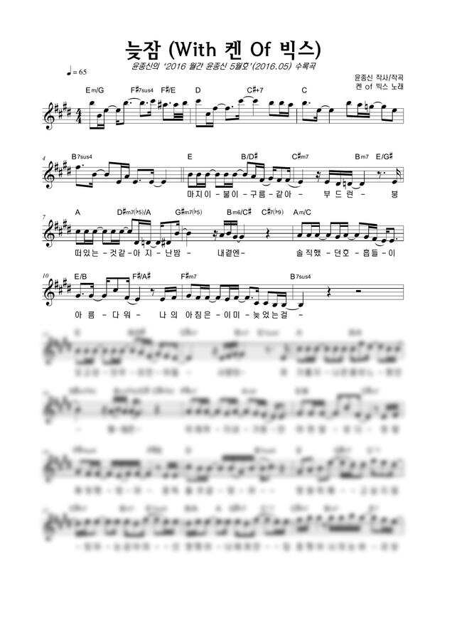 윤종신 - 늦잠 (With 켄 Of 빅스) by 악보마트