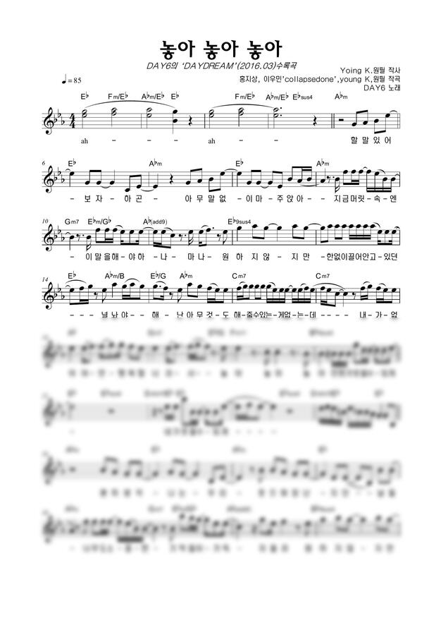 DAY6 (데이식스) - 놓아 놓아 놓아 by 악보마트