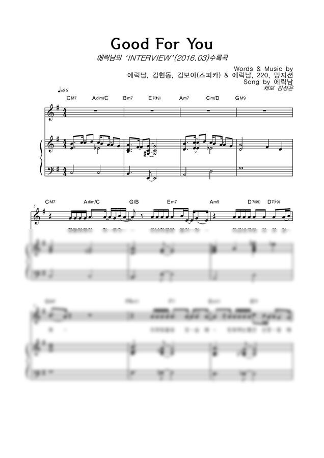에릭남 - Good For You by 악보마트