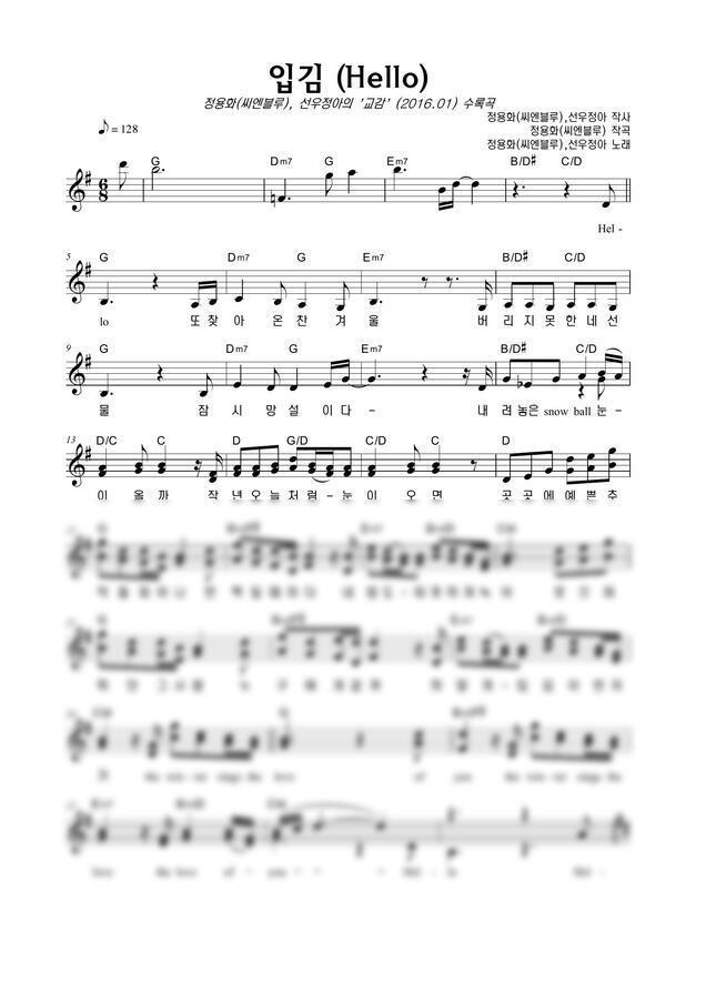 정용화(씨엔블루), 선우정아 - 입김 (Hello) by 악보마트