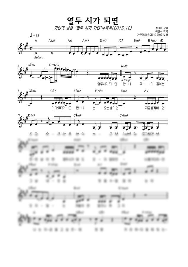 가인 - 열두 시가 되면 by 악보마트