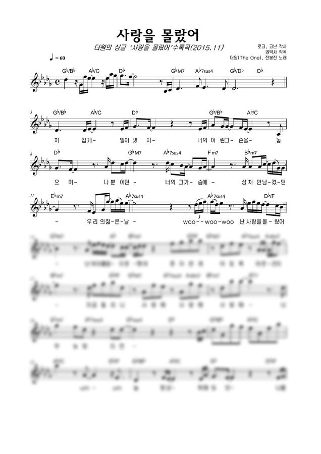 더원, 전봉진 - 사랑을 몰랐어 by 악보마트 2p 미리보기