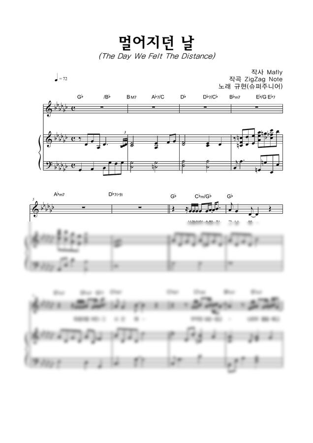 규현(슈퍼주니어) - 멀어지던 날 (The day we felt the distance) by 악보마트