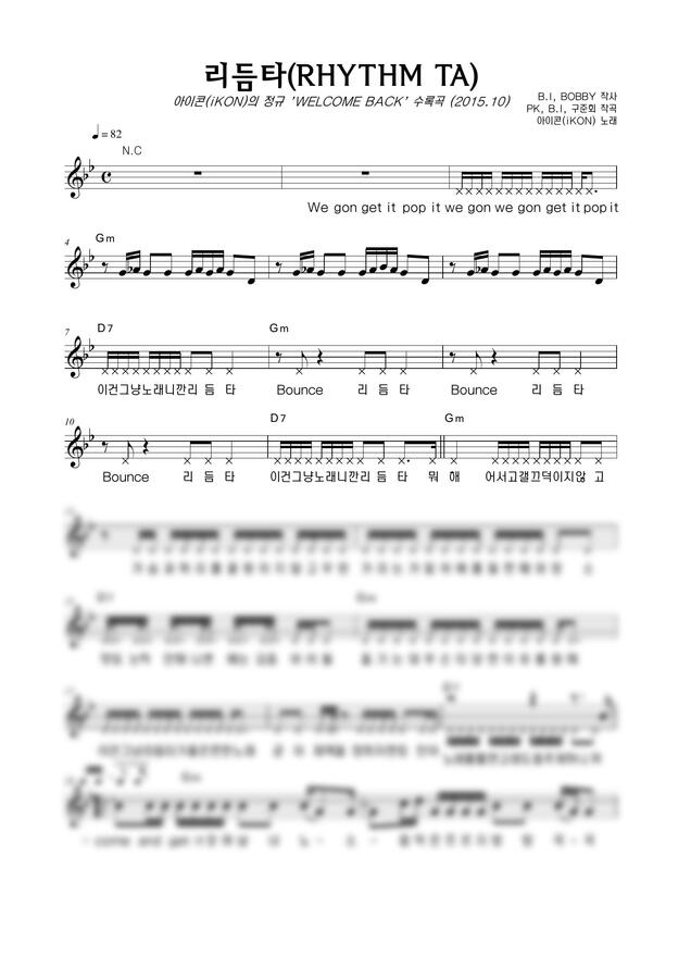 iKON(아이콘) - 리듬 타 (RHYTHM TA) by 악보마트