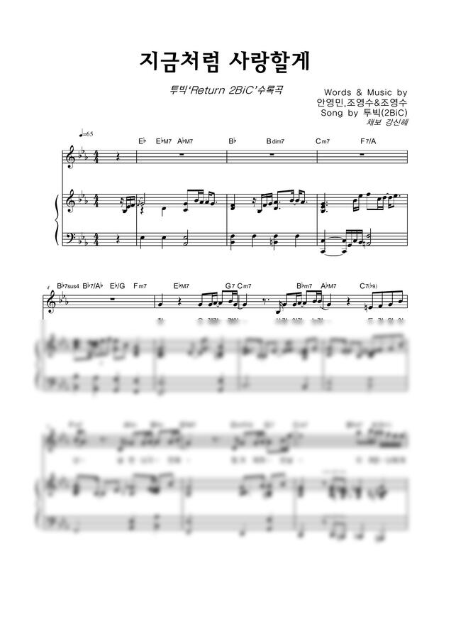 투빅 - 지금처럼 사랑할게 by 악보마트