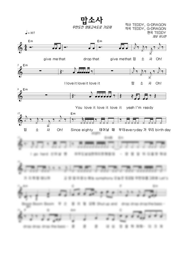 황태지 (황광희, 태양, 지드래곤) - 맙소사 by 악보마트