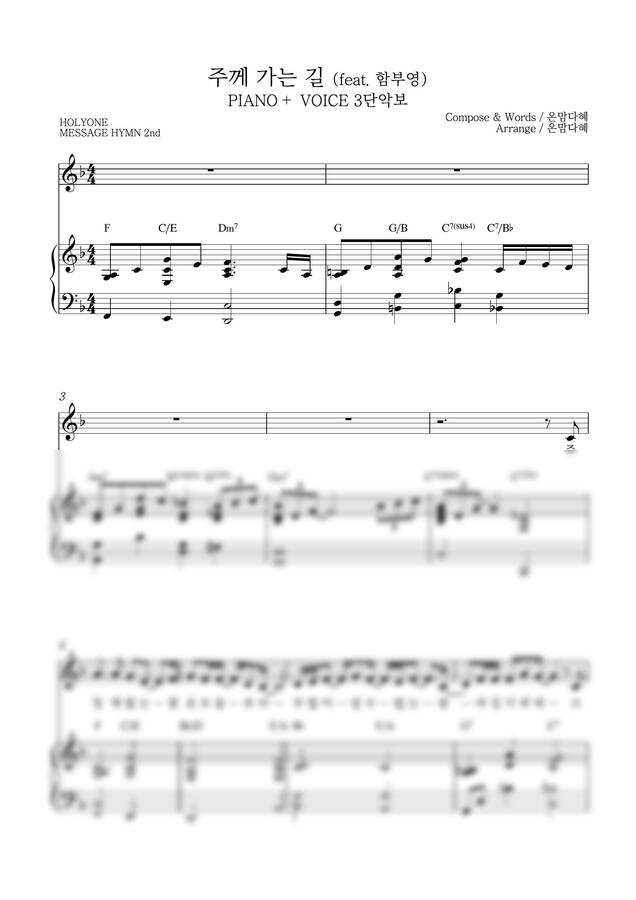 홀리원 (HOLYONE) - 주께 가는 길 (feat. 함부영) (피아노 3단) by 온맘다혜