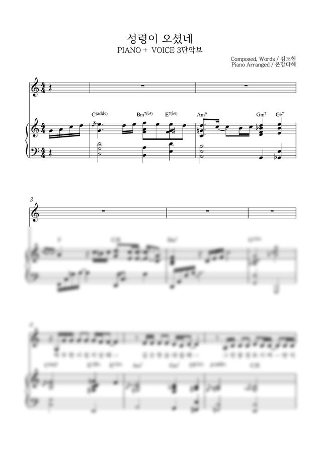 김도현 - 성령이 오셨네 (피아노 3단) by 온맘다혜 2p 미리보기