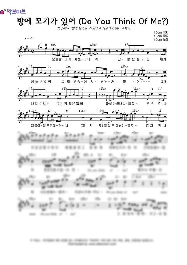 10cm - 방에 모기가 있어 (Do You Think Of Me?) by 악보마트