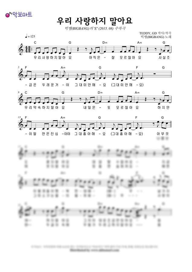 BIGBANG (빅뱅) - 우리 사랑하지 말아요 (멜로디 악보) by 악보마트
