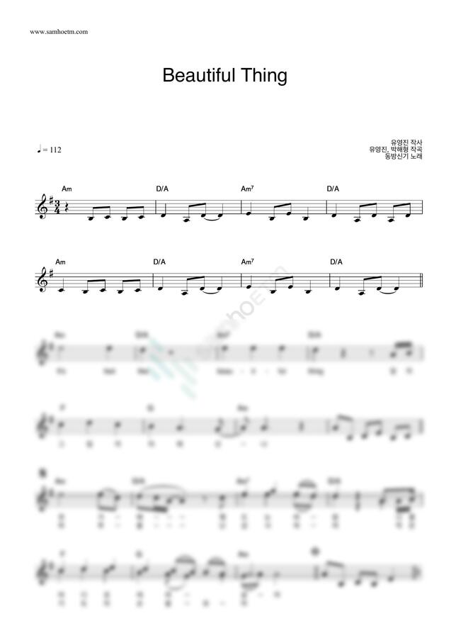 동방신기 (TVXQ!) - Beautiful Thing by 악보마트