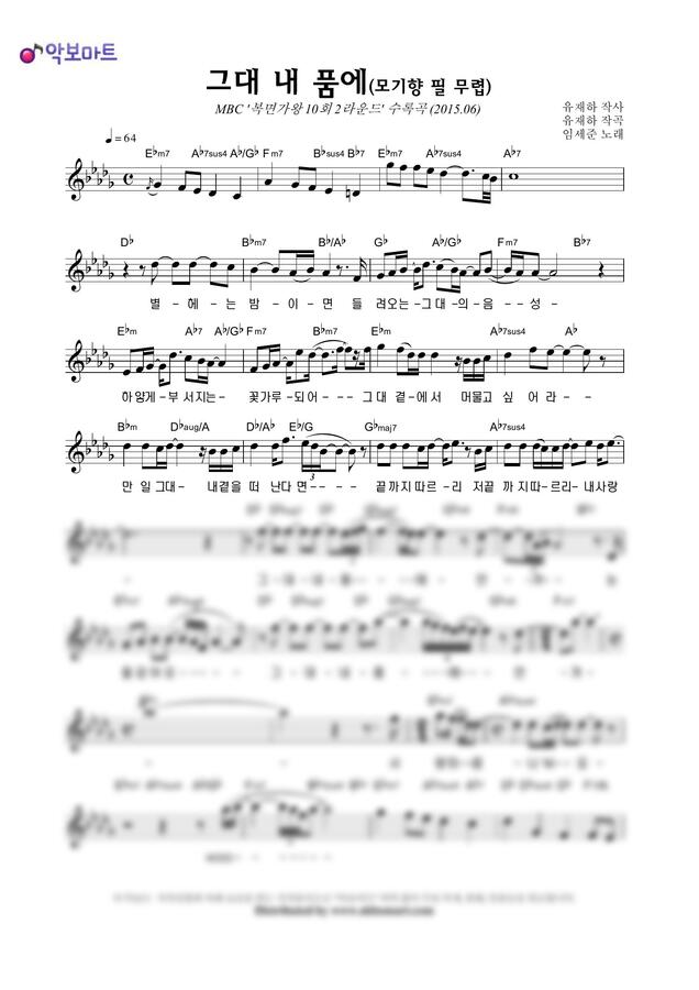 임세준 - 그대 내 품에 (모기향 필 무렵) by 악보마트1
